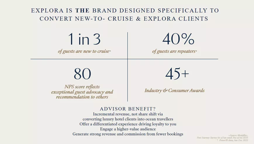 However, we know there is significant potential to create new bookings, particularly among clients who currently book only luxury land‑based escapes. Explora Journeys ships are positioned as luxury hotels at sea — destinations in themselves, not just transport.