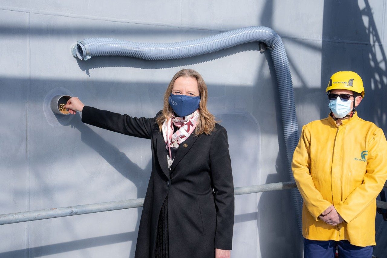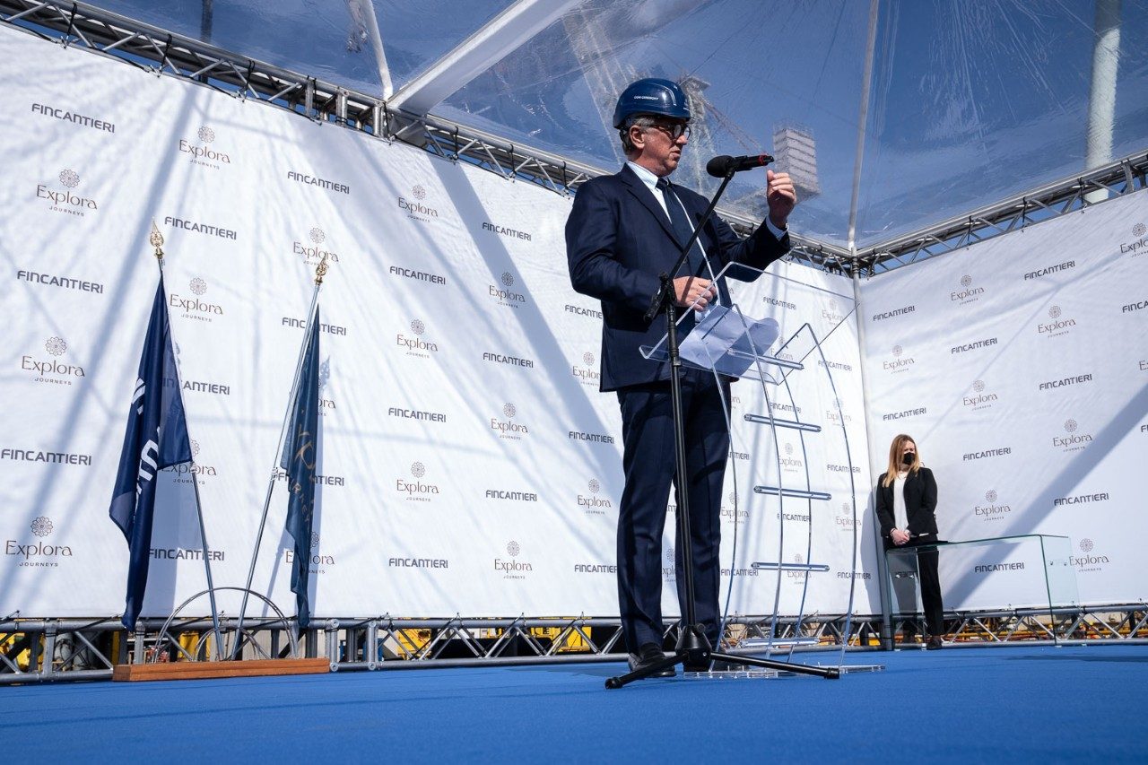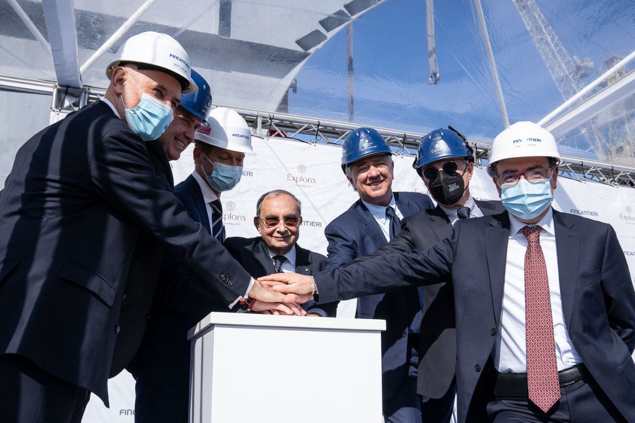 Cette tradition maritime de longue date se déroule lorsque le premier bloc ou une partie du bateau est déposé dans sa cale sèche : deux employés de longue date représentant le chantier naval et les propriétaires du bateau parrainent la cérémonie et placent deux pièces nouvellement frappées sous la quille du bateau pour lui porter bonheur. Les marraines de la cérémonie d’aujourd’hui étaient Alessandra Fontana, directrice marketing en chef d’Explora Journeys, et Ester Fugazzi, cheffe des services généraux chez Fincantieri.
