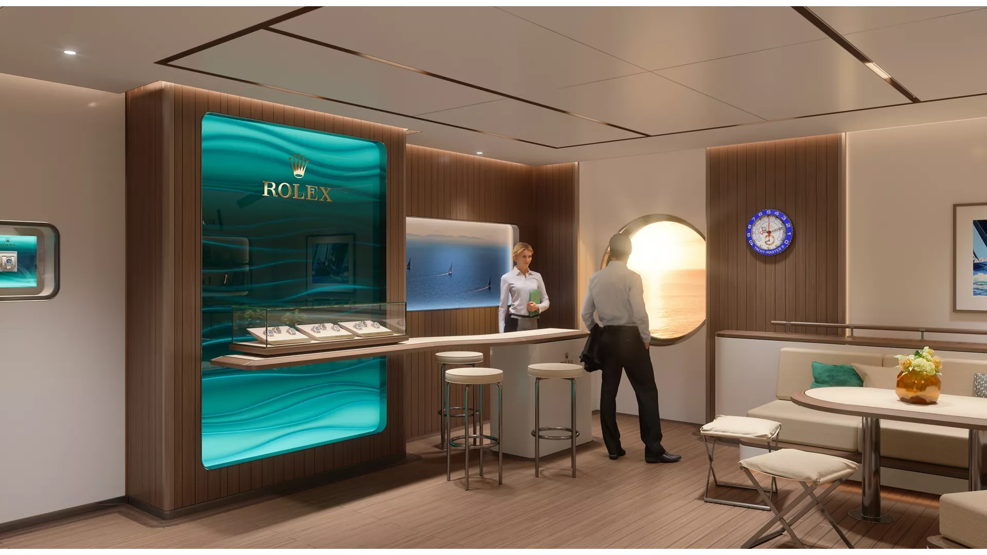 The new ‘Rolex at sea mono brand store’ offers travellers an unparalleled shopping experience. Its elegant design aesthetic is an invitation to browse an extensive range of models and styles.