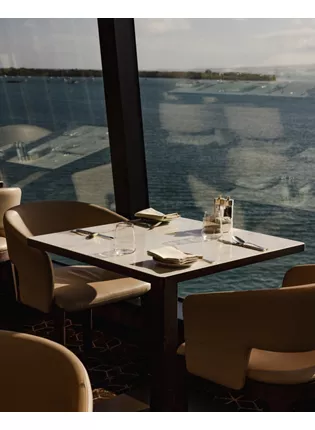 Open kitchens buzz with quiet energy, while artisanal charcuterie, fromagerie and pâtisserie stations bring a refined touch. A chilled glass of Champagne partners perfectly with fresh crudo, as the sun sets on the horizon.