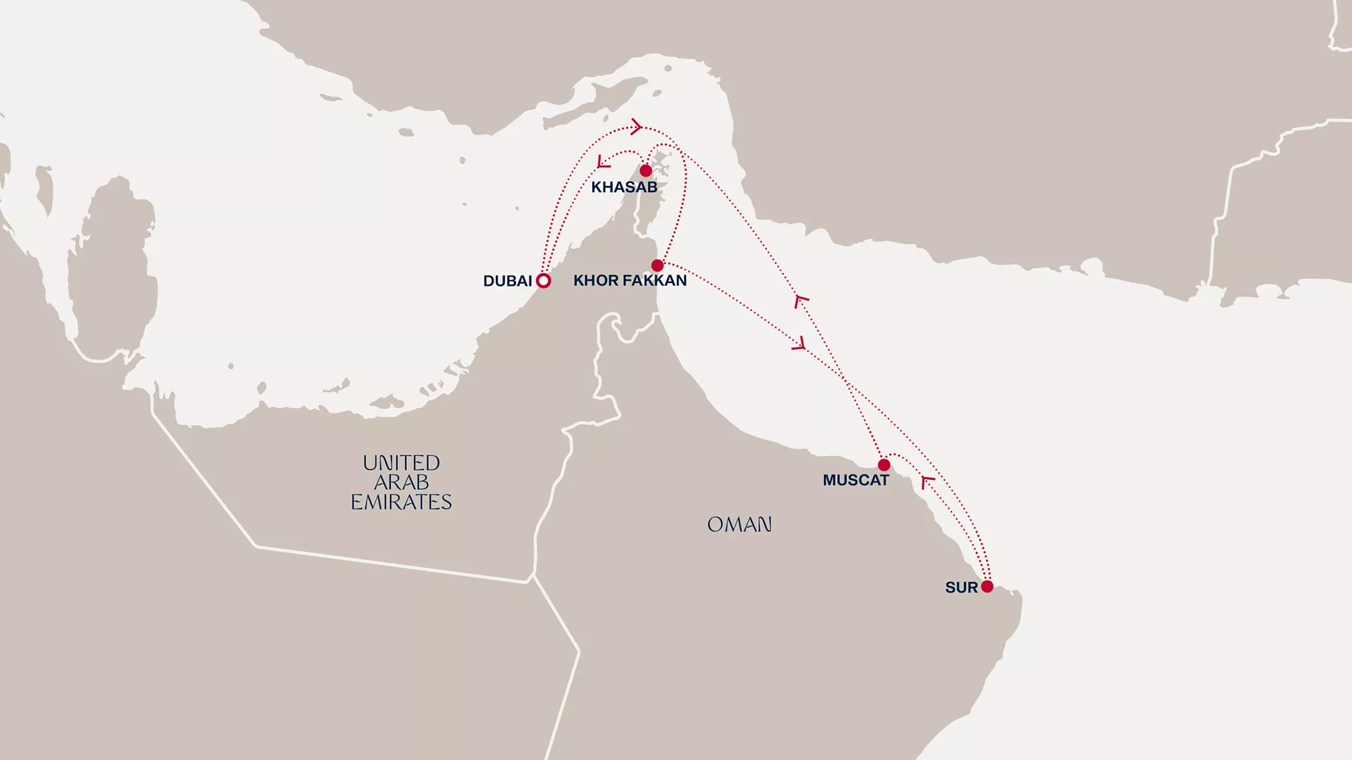 This captivating journey transports you to the enchantment of Oman and the UAE with festive elegance aboard EXPLORA II. Begin in Dubai’s glittering metropolis, then set sail to Khor Fakkan’s biodiverse wadis and Sur’s traditional dhow-building heritage. Luxuriate in a relaxing day at sea before arriving in Muscat, where historic forts and vibrant souks await. Explore Khasab’s dramatic fjords and tranquil waters, then return to Dubai’s sun-baked grandeur.