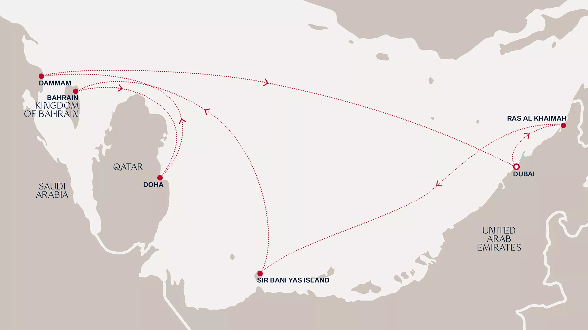 Begin with an overnight stay in Dubai, where architectural marvels rise against the desert sky, then pause in Ras Al Khaimah’s