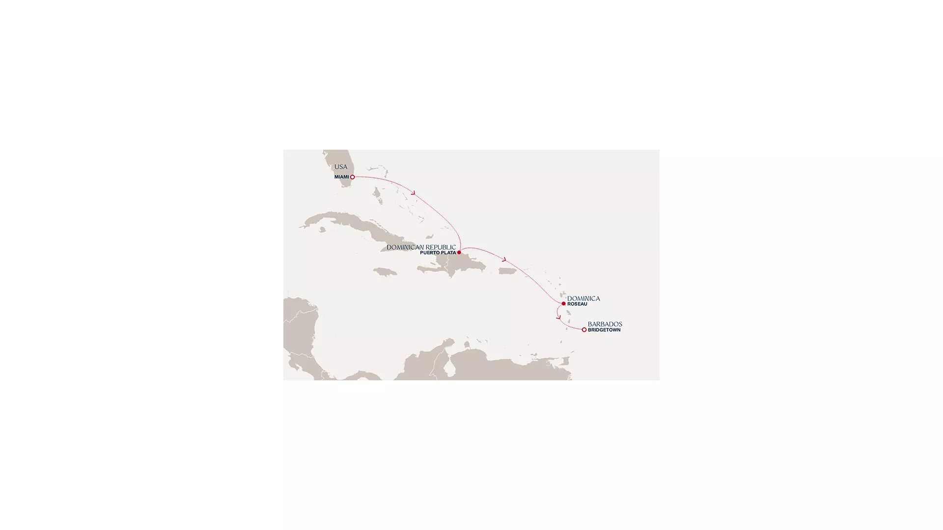 Begin in Miami’s colourful swirl of culture and coastal energy before settling into open-ocean calm. Puerto Plata follows with jungle peaks, rum-soaked heritage and adventure-filled shores, then Dominica reveals rainforests, waterfalls and volcanic springs. The journey eases into Barbados, where Bajan warmth and beautiful beaches provide a sunlit finale.