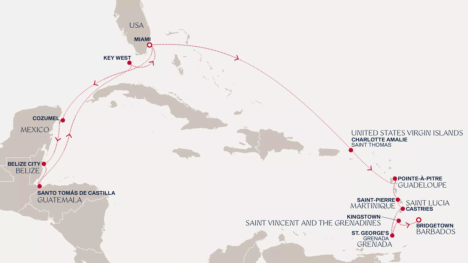 landscapes and underwater worlds await as we cast off from Miami, stopping to