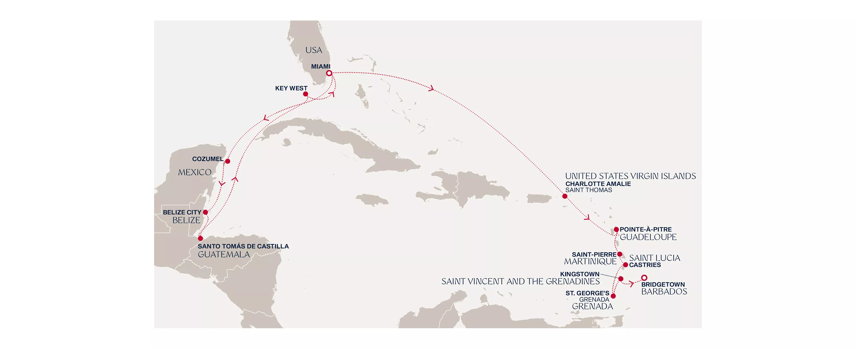 Observe your route and stops through our itinerary section, providing full details on each port.