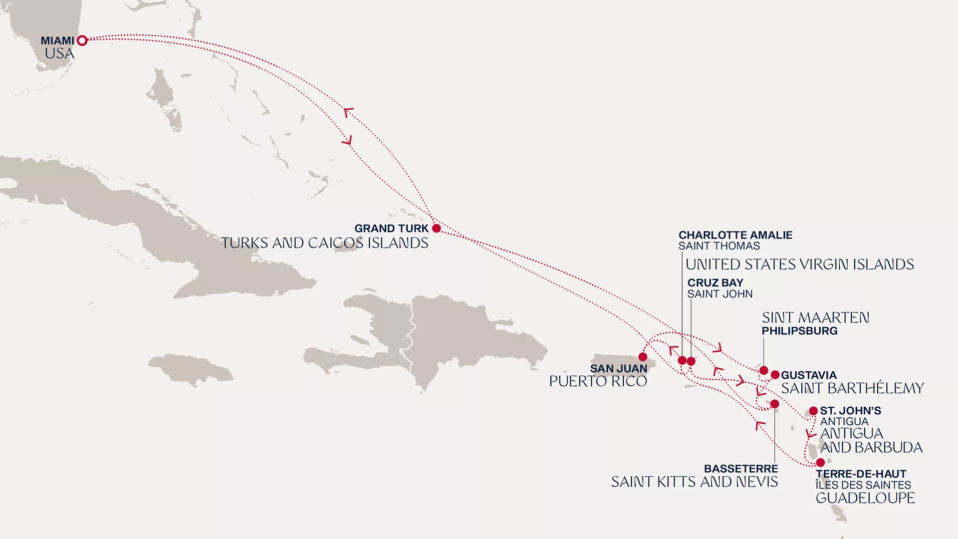 on Grand Turk’s white sands before Miami’s skyline draws our journey to a