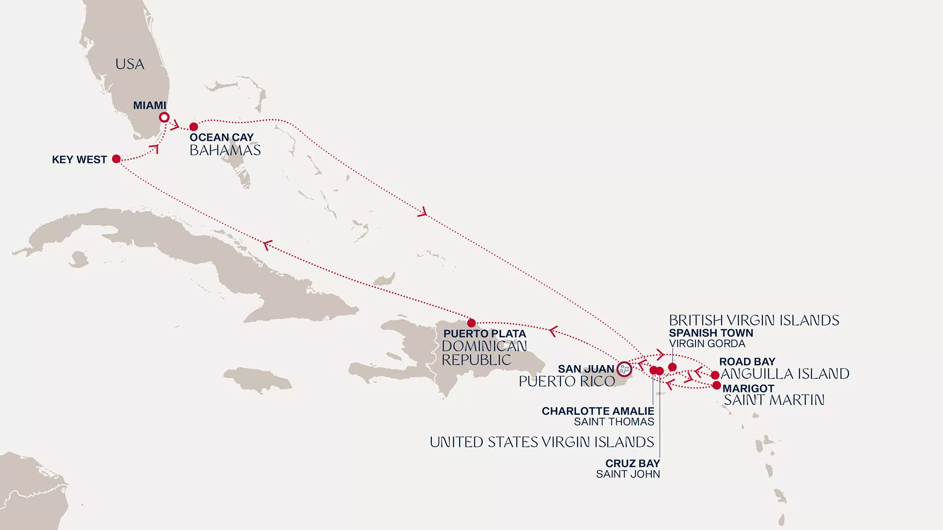 Season’s greetings harmonise with warm island paradise and stress-free strolls on beaches of shimmering white sand. Relish sun-kissed relaxation aboard EXPLORA II as you gracefully traverse the turquoise waves. At Ocean Cay Marine Reserve, indulge in seaside massages and, in St Martin, sip delicious cocktails. Welcome the New Year with firework-bright Puerto Rico skies and weave through glorious island views to Florida’s golden shores.