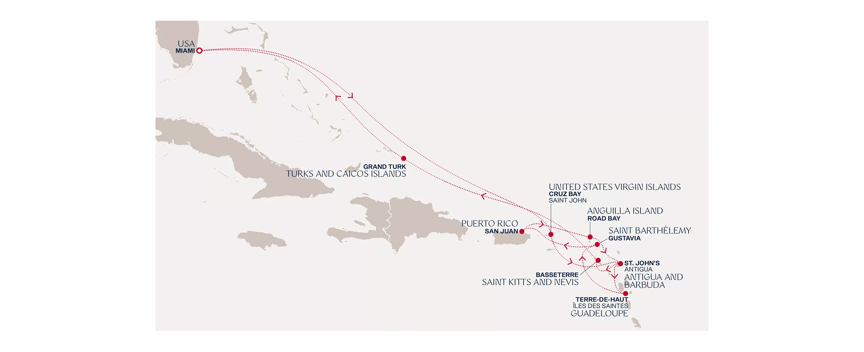 Observe your route and stops through our itinerary section, providing full details on each port.