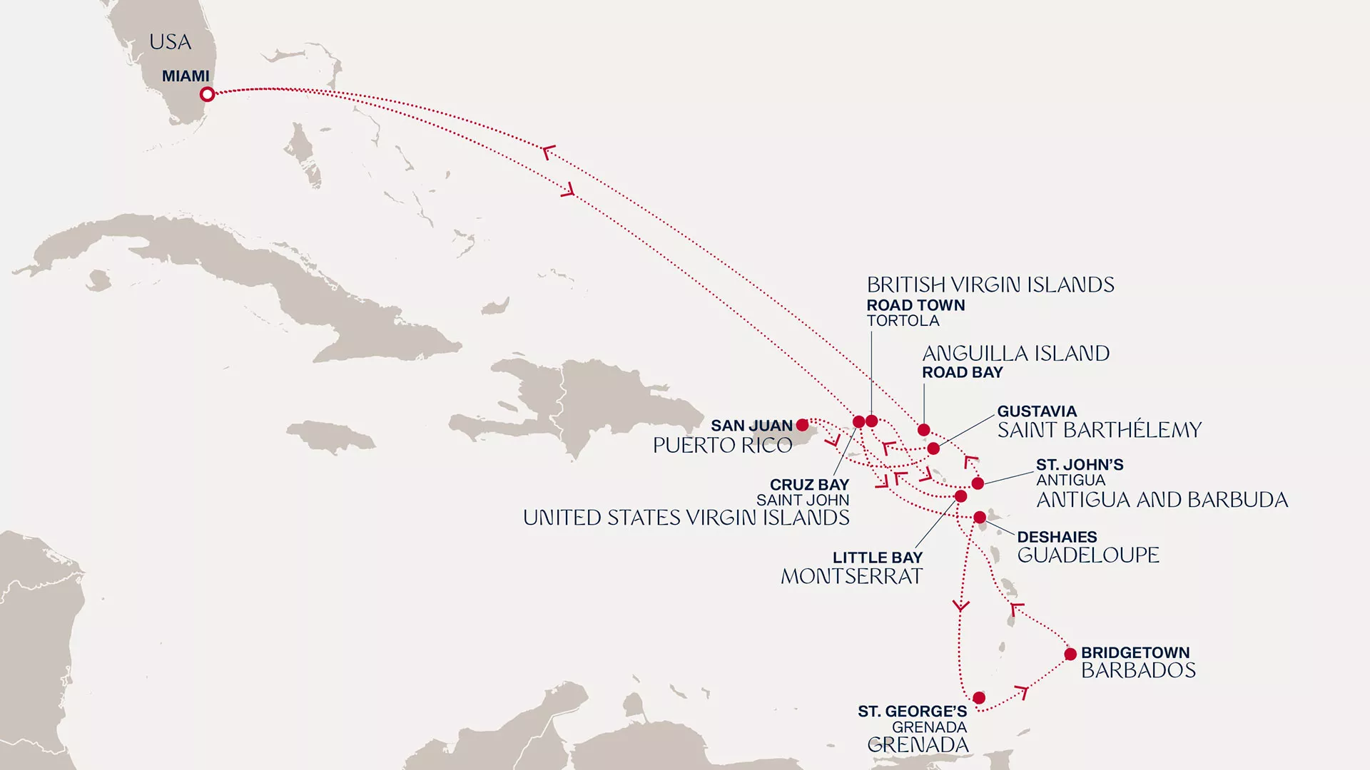 Breathe in the ocean air and revel in wellbeing aboard EXPLORA I as you traverse to the emerald rainforests of Saint John. Take in the tranquillity of Deshaies, the spicy fragrances of Grenada and the history-shrouded streets of Bridgetown. In Montserrat, stroll along black sands, a stepping stone to San Juan’s Caribbean flair. Golden sunsets in Saint Barthélemy lead you onwards to Tortola's enchanting forests. Admire hues of blue in Antigua and Anguilla before Miami glitters on the horizon.