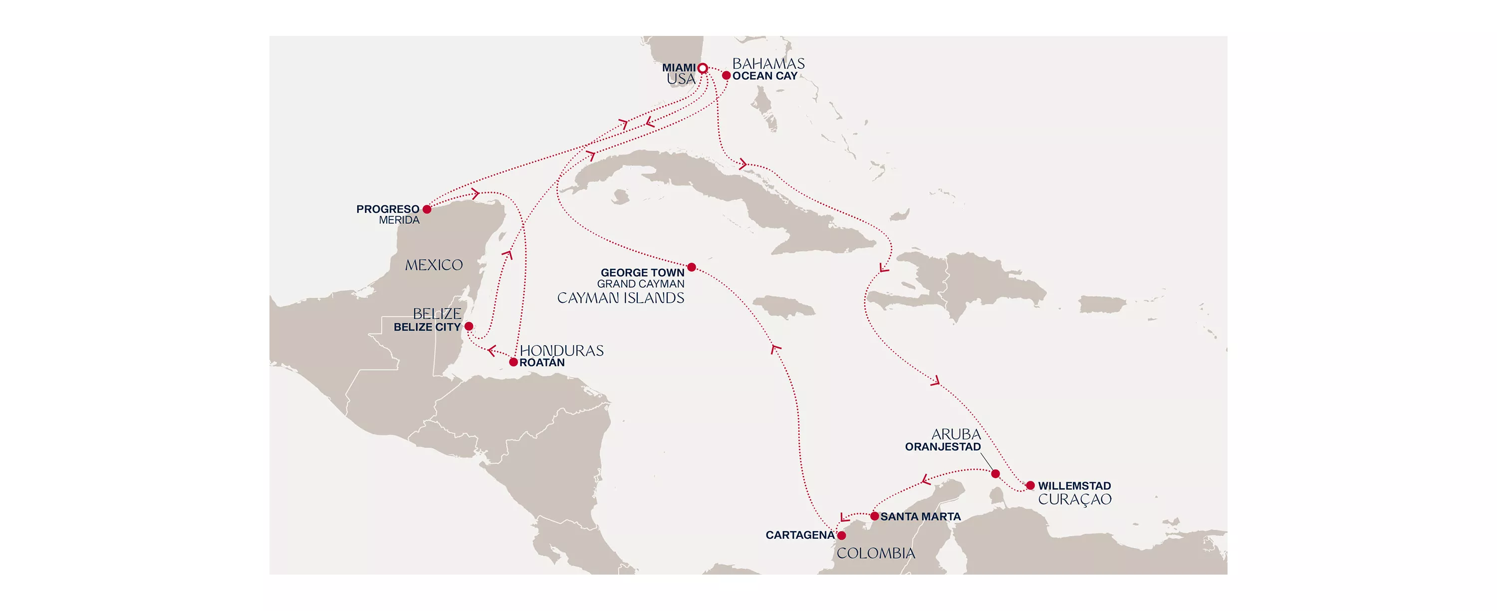 Observe your route and stops through our itinerary section, providing full details on each port.