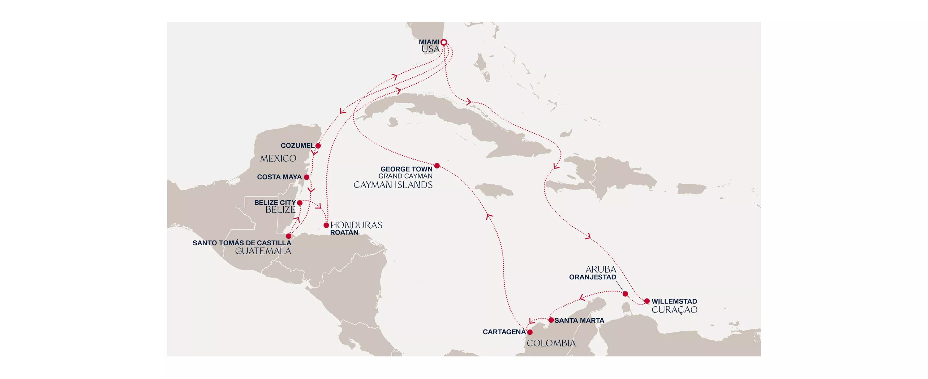 Observe your route and stops through our itinerary section, providing full details on each port.