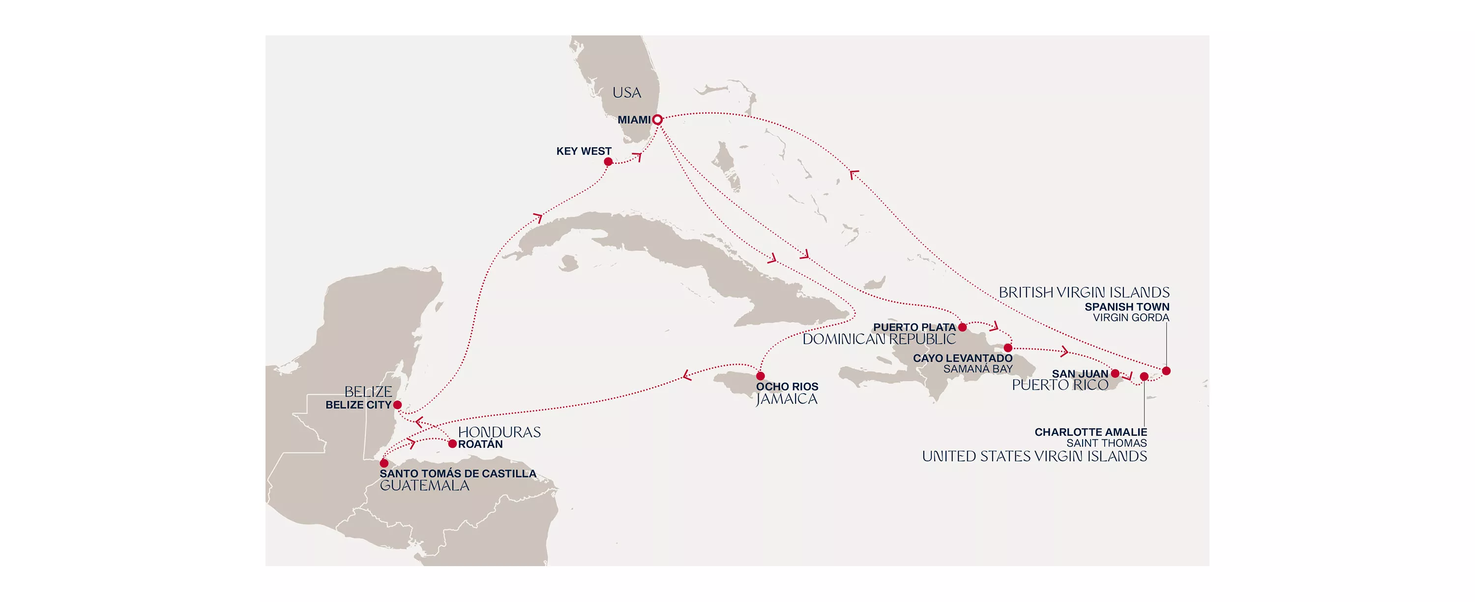 Observe your route and stops through our itinerary section, providing full details on each port.