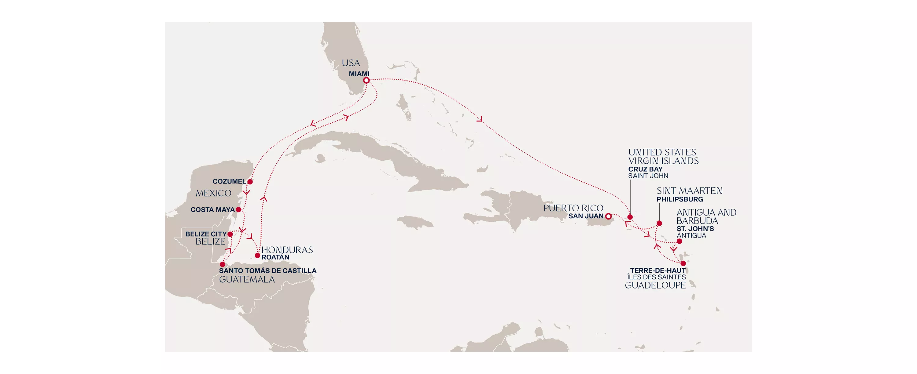 Observe your route and stops through our itinerary section, providing full details on each port.
