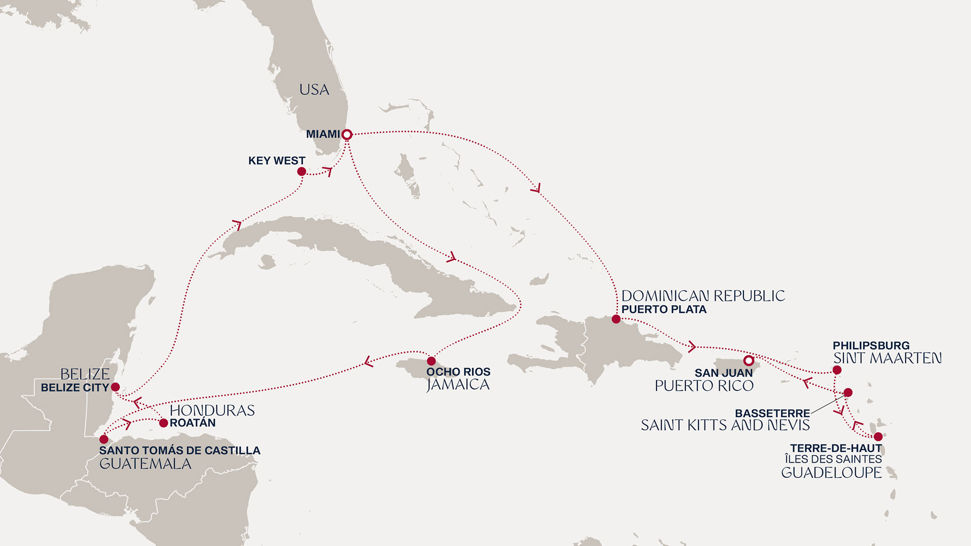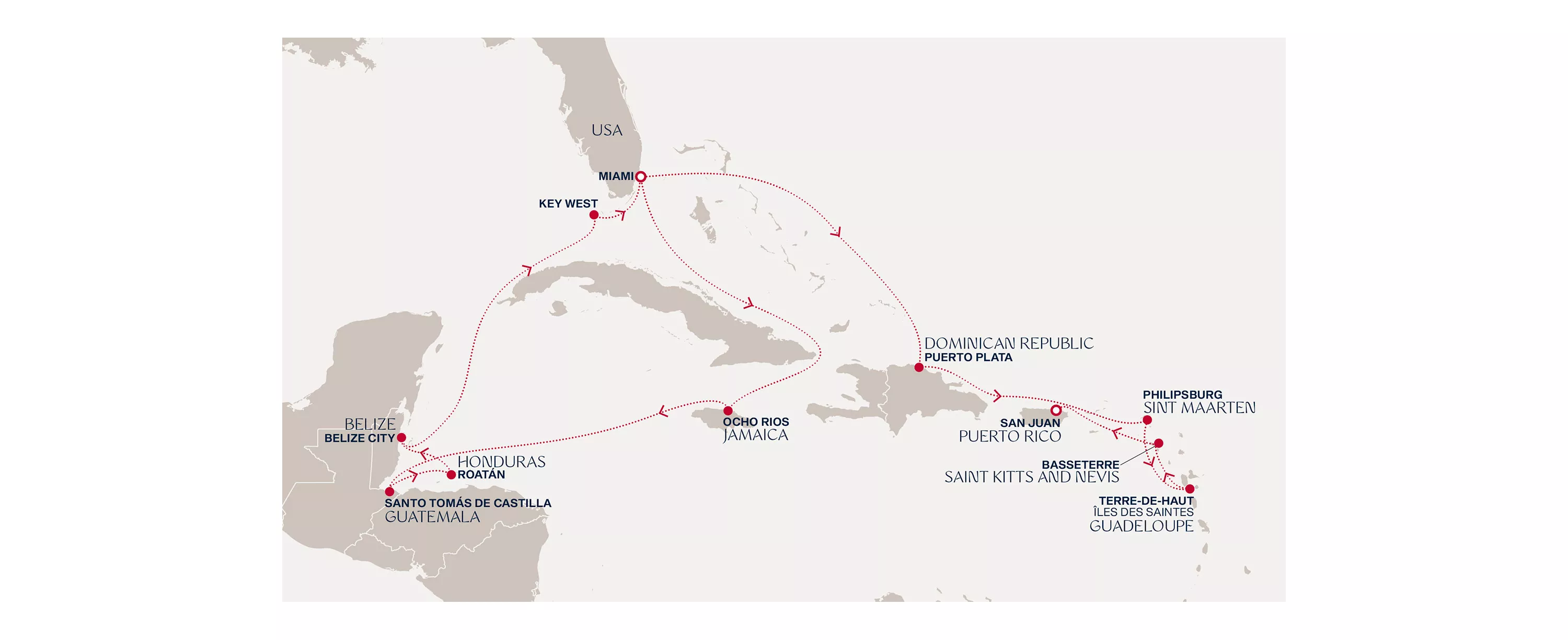 Observe your route and stops through our itinerary section, providing full details on each port.