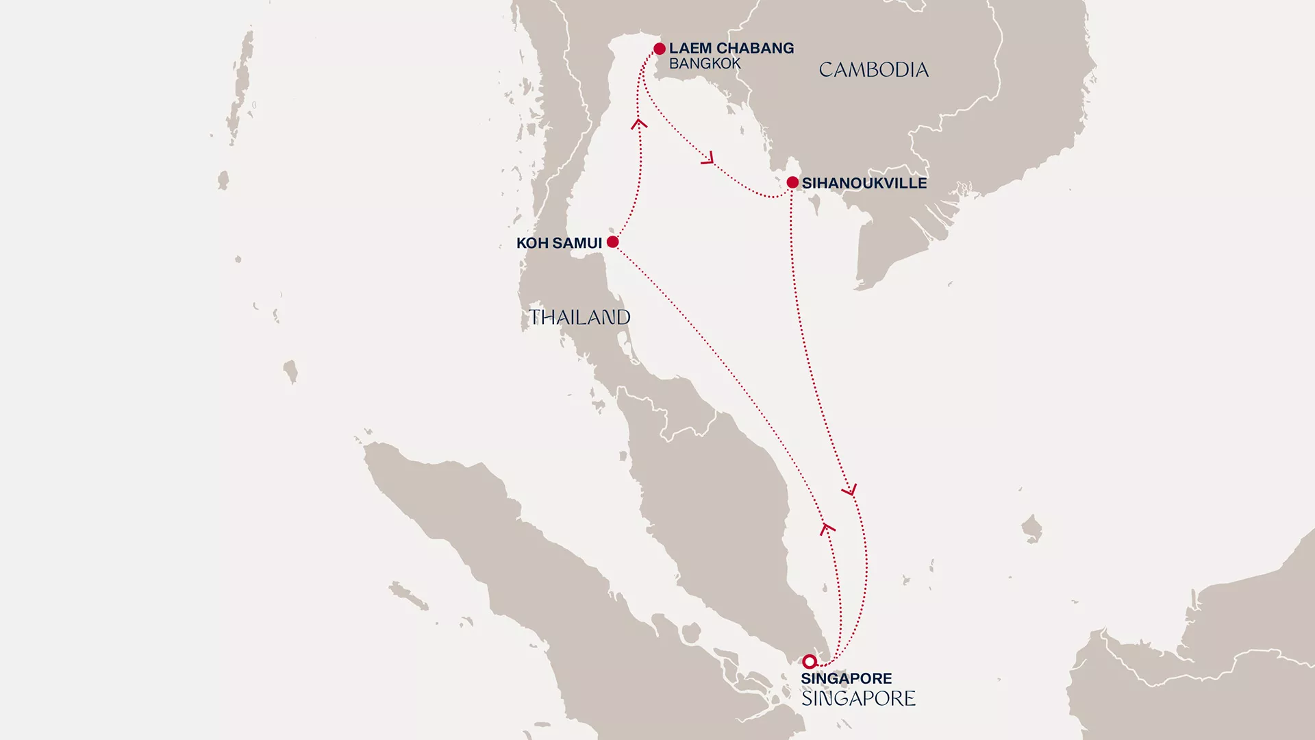 Sail from Singapore’s sleek coastline to Koh Samui’s tranquil coves,