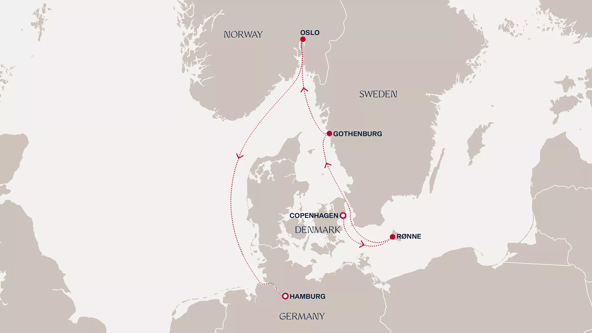 From Copenhagen, sail to Rønne’s island calm and Gothenburg’s canals lined with Nordic charm. Oslo blends modern culture with fjordside beauty before a peaceful day at sea. Conclude in Hamburg, where maritime spirit and cultural vibrance meet.
