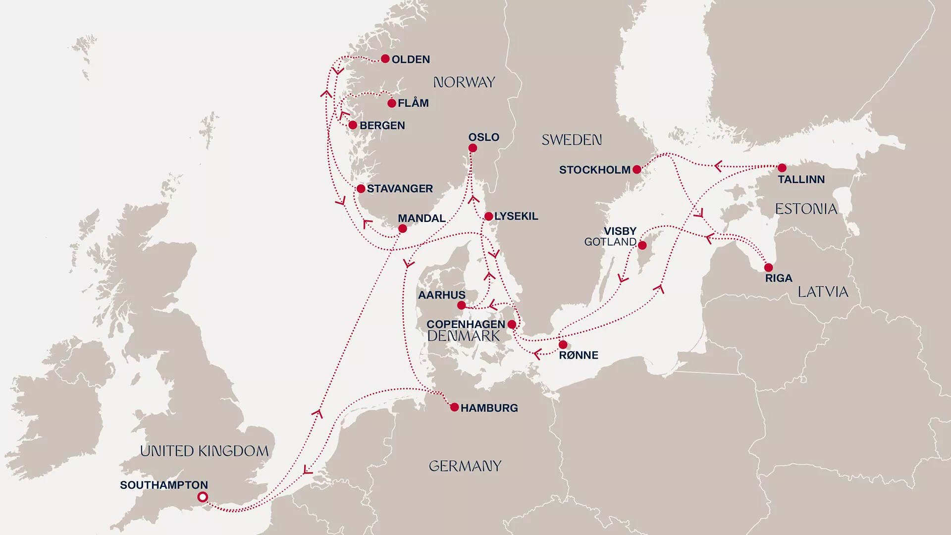sail on a montage of nature and culture, leaving Southampton for Norway’s