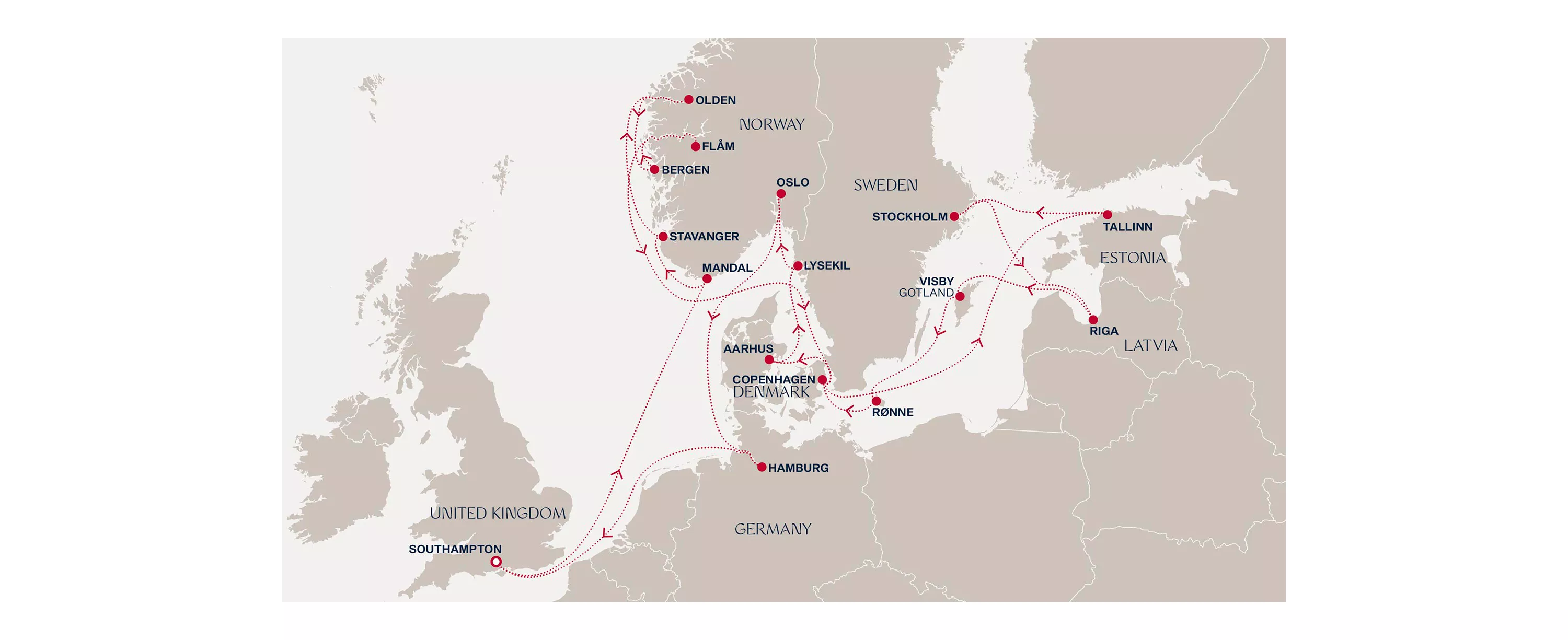 Observe your route and stops through our itinerary section, providing full details on each port.