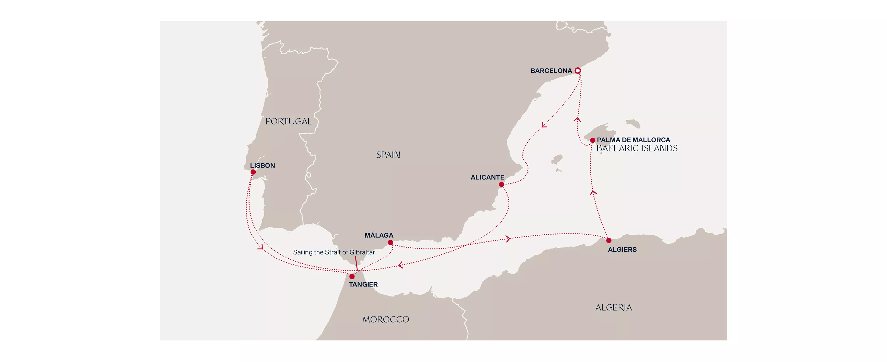 Observe your route and stops through our itinerary section, providing full details on each port.