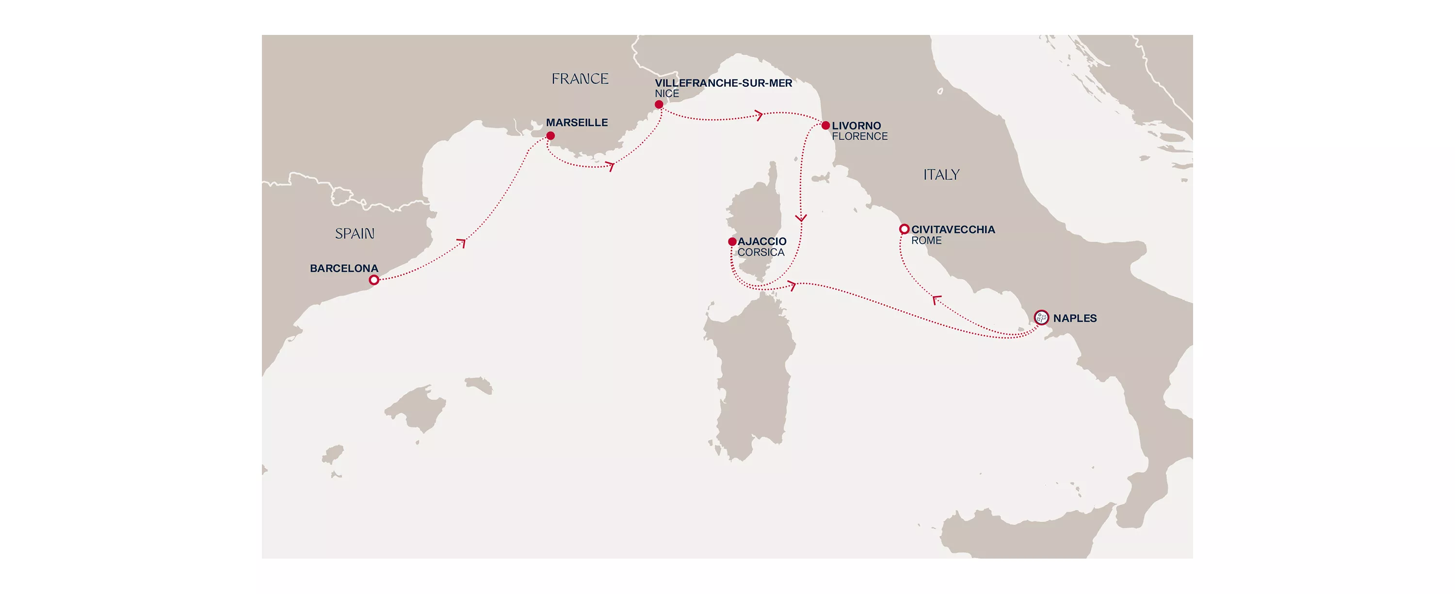 Observe your route and stops through our itinerary section, providing full details on each port.