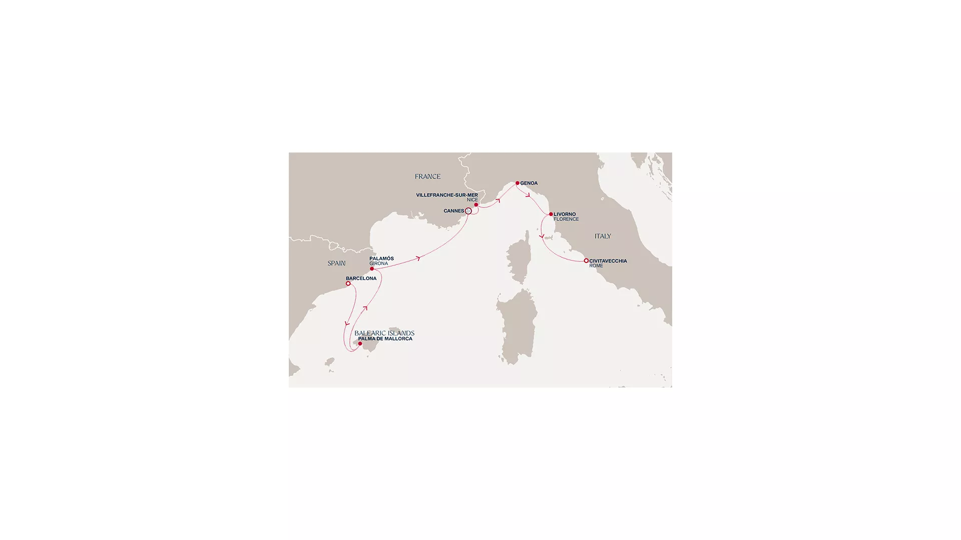 Begin in Barcelona’s vibrant embrace before Palma and Palamós reveal the relaxed charm of Spain’s sunlit coast. As the year turns, Cannes sparkles with dazzling fireworks and Riviera glamour, creating an unforgettable celebration by the sea. Continue to Villefranche-sur-Mer’s refined beauty and Genoa’s maritime heritage, before Florence’s artistic treasures unfold. Conclude in Rome, where timeless history and festive spirit provide a fitting finale to this elegant Mediterranean escape.