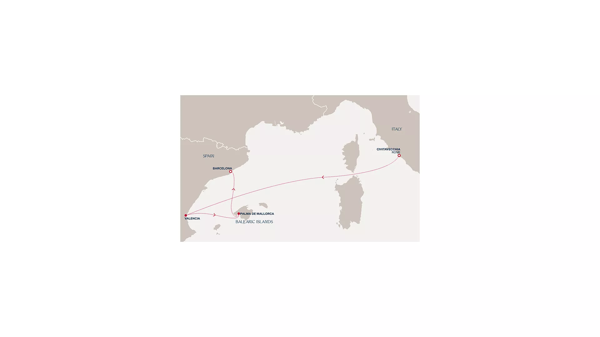 Set out from Rome’s timeless atmosphere to journey into gentle rhythms at sea, reaching Valencia’s citrus scents and lively blend of historic streets and modern flair. Discover the castle-topped towns, hidden coves and island ease of Mallorca, then embrace the creativity, colour and Catalan spirit that animate the avenues of Barcelona.