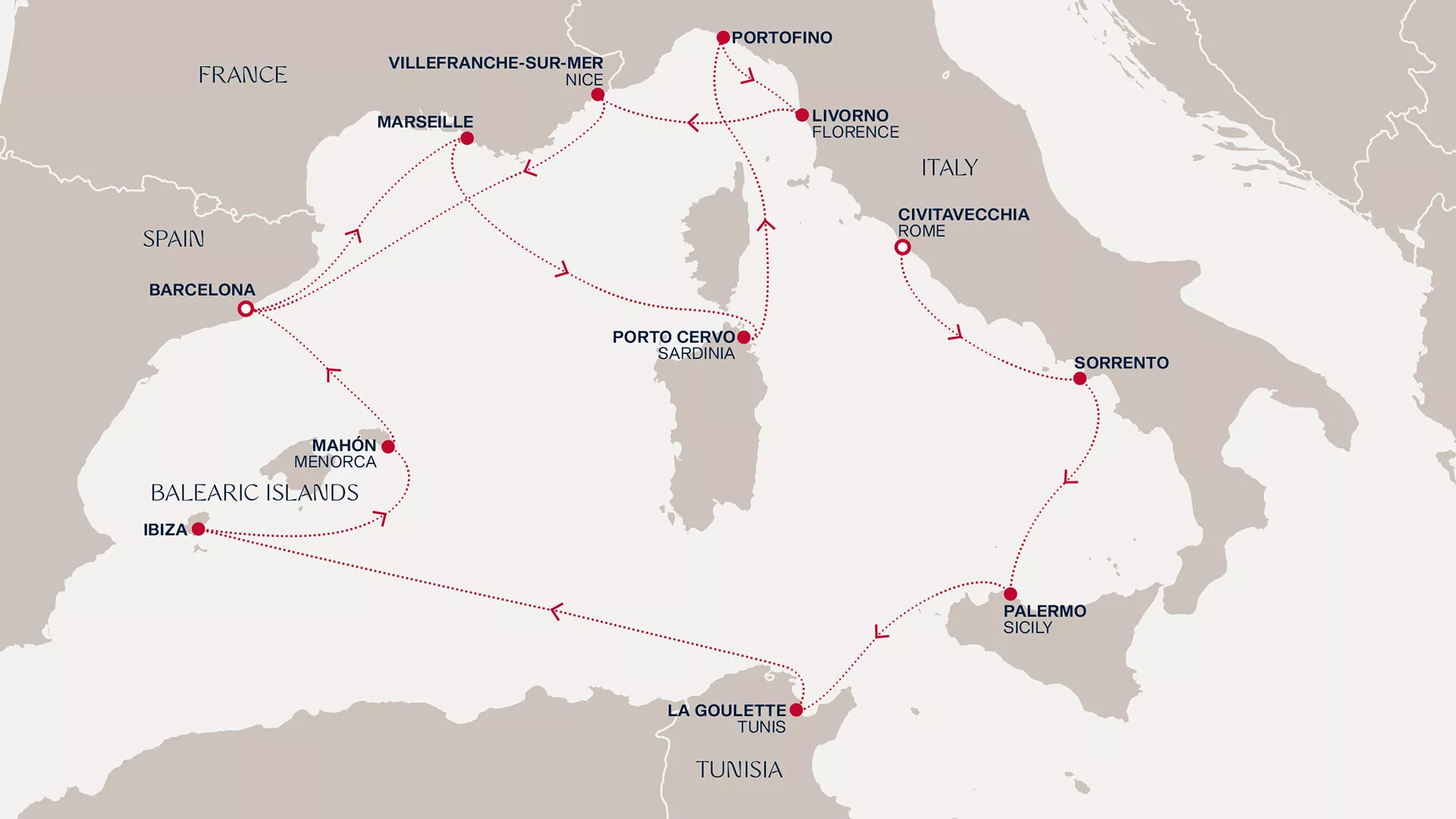 drifting to Barcelona. From there, bask in Marseille’s Calanques, Porto Cervo’s sparkling shores and Portofino’s pastel dreams.