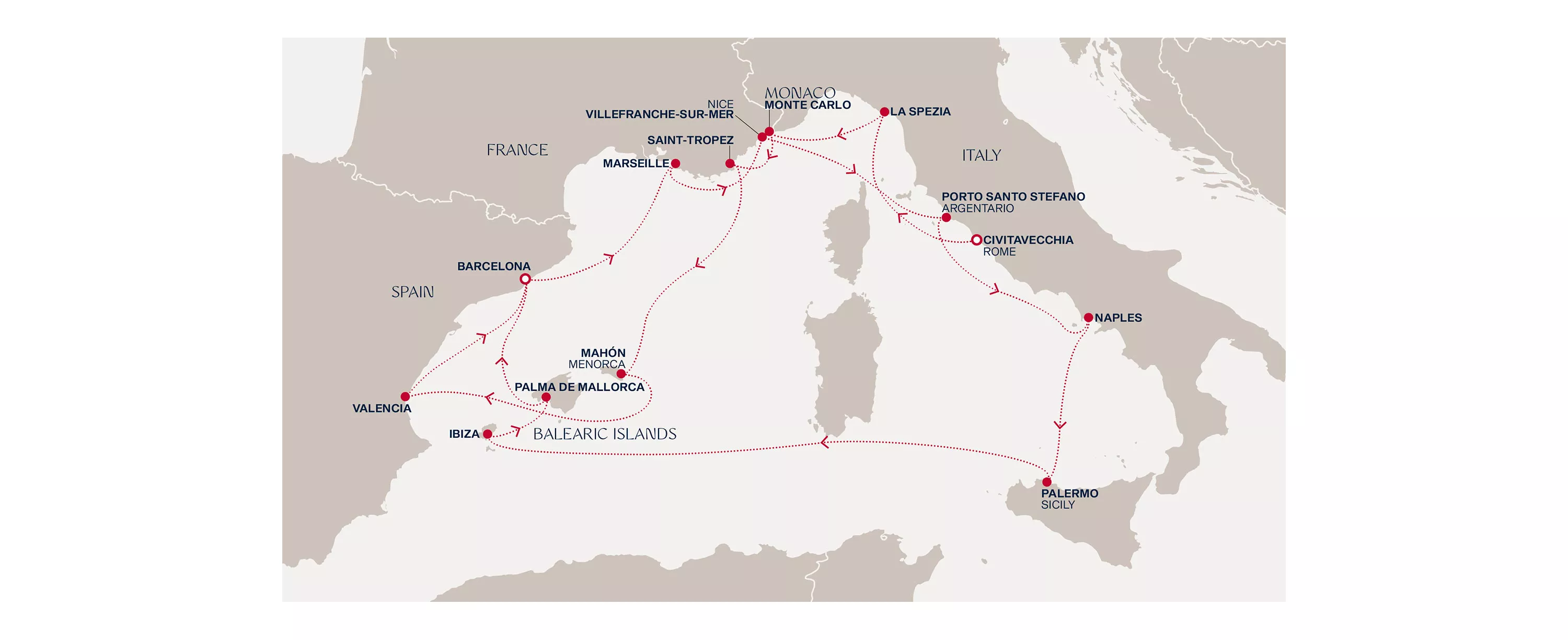 Observe your route and stops through our itinerary section, providing full details on each port.