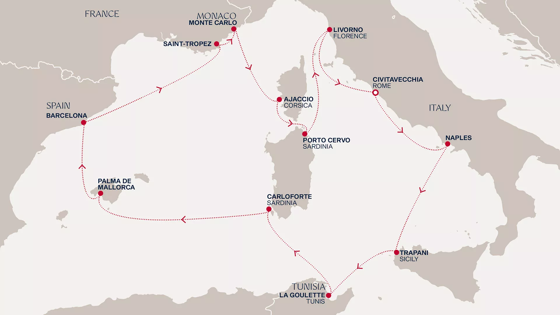 islands of Mallorca, Corsica and wild Sardinia. The tides of the Tyrrhenian