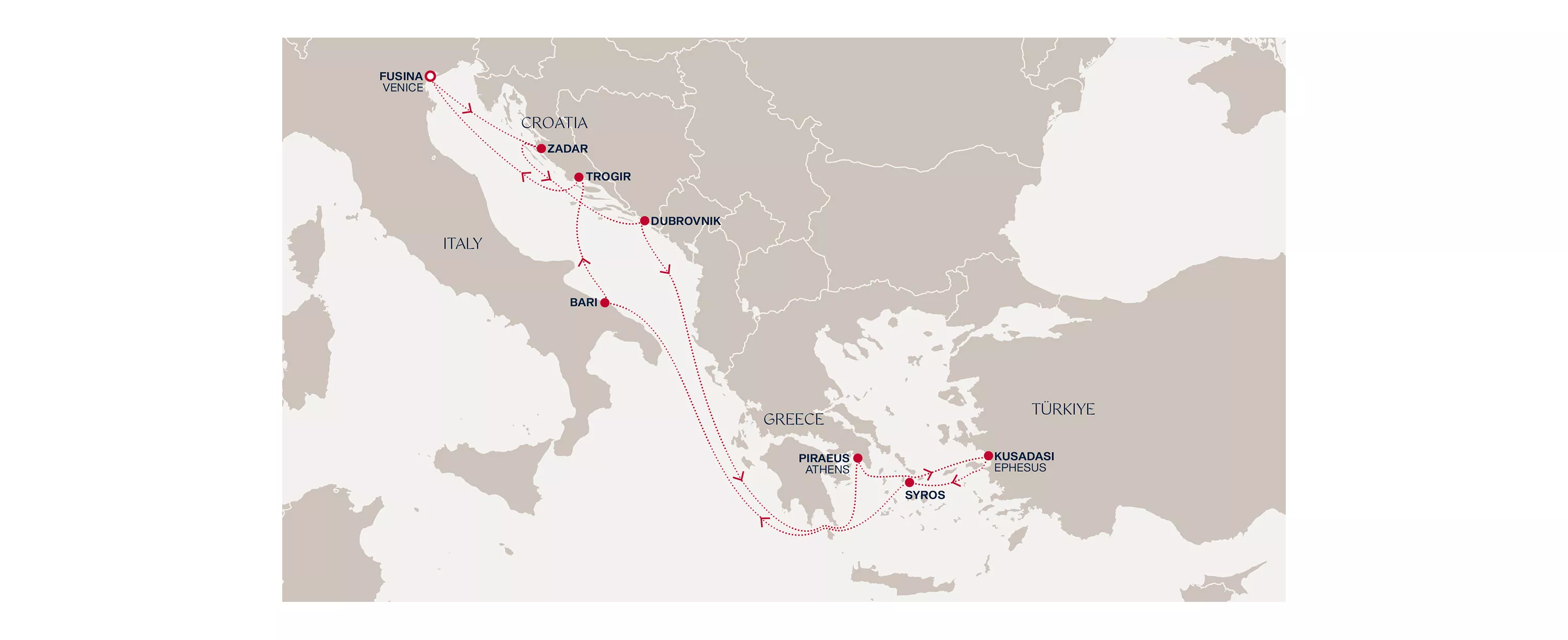 Observe your route and stops through our itinerary section, providing full details on each port.