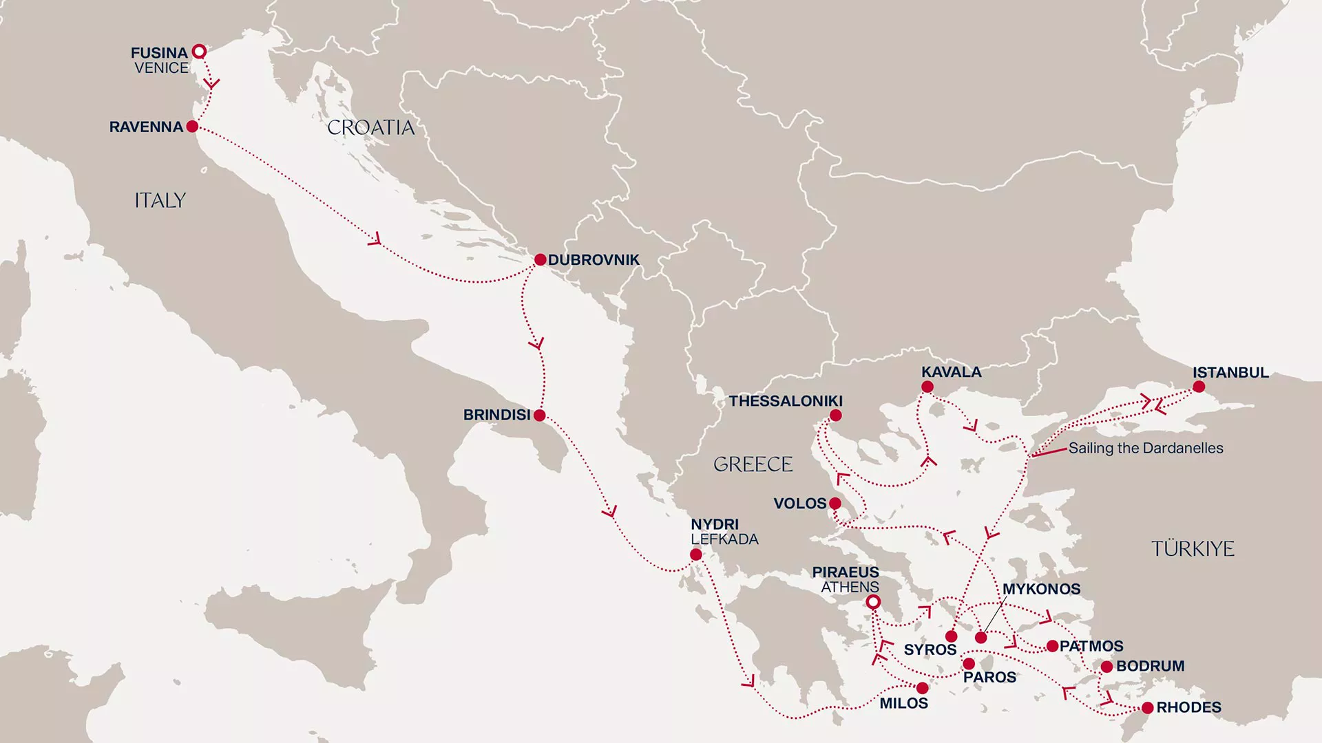 Dab vivid colours on your artist’s palette as you brush through the cobalt waves, from the golden canals of Venice to the emeralds of Ravenna, Dubrovnik and Lefkas. Beyond lies the drama of the Aegean’s volcanic islands, showcasing nature’s beauty, as well as electric nightlife. Uncover the mysteries of Istanbul before dipping through the Dardanelles and tracing the Turquoise Coast to Bodrum and the medieval heritage of Rhodes. Relax on Paros’ beaches, then explore art and culture in Athens.