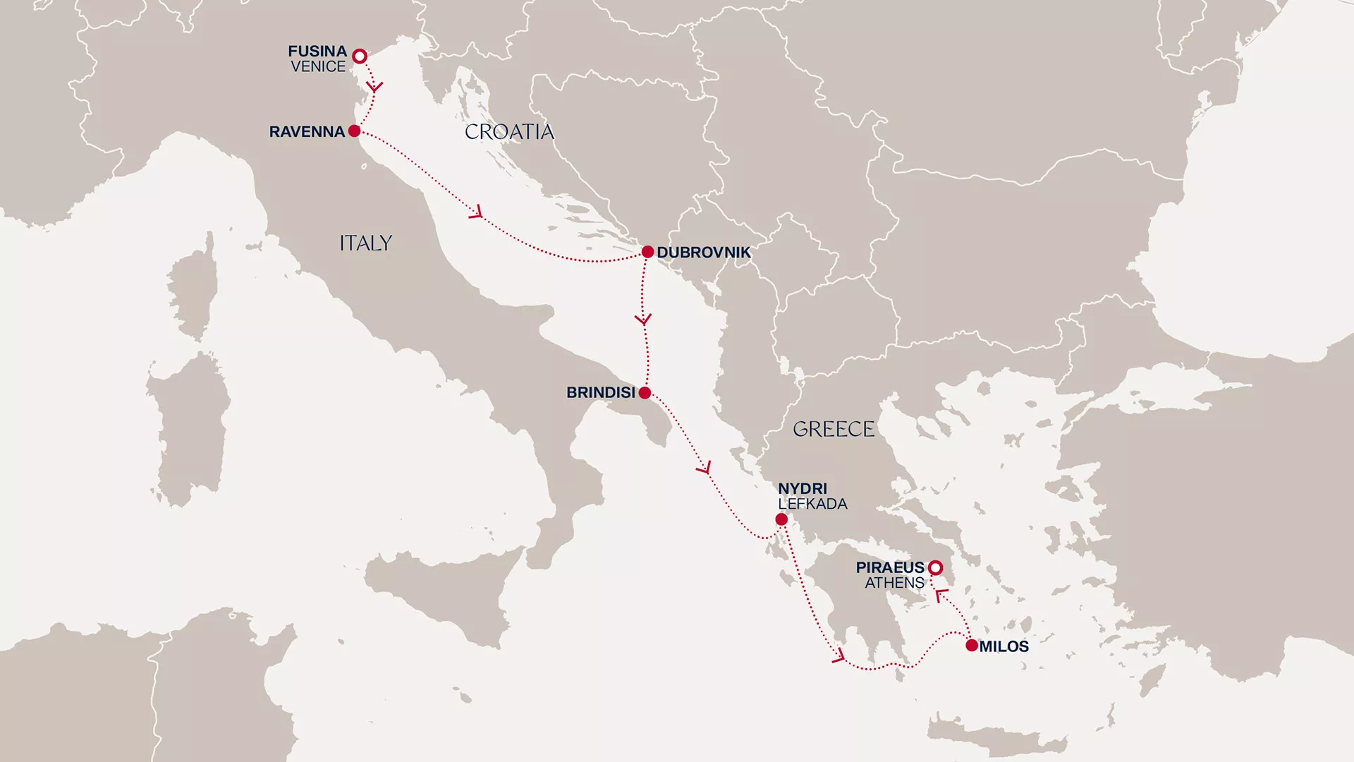 With the goddess of love in our mind’s eye, we say farewell to San Marco and the Grand Canal and voyage the blue-green Adriatic, from Dante’s Ravenna to Dalmatia and then Brindisi, for orecchiette, baroque beauty and Italy’s best beaches. Our classic world immersion begins in Lefkas, the lush mountainous interior as beguiling as the lively waterfront marina overlooking the Ionian, before the Aegean carries us to Milos and Athens.