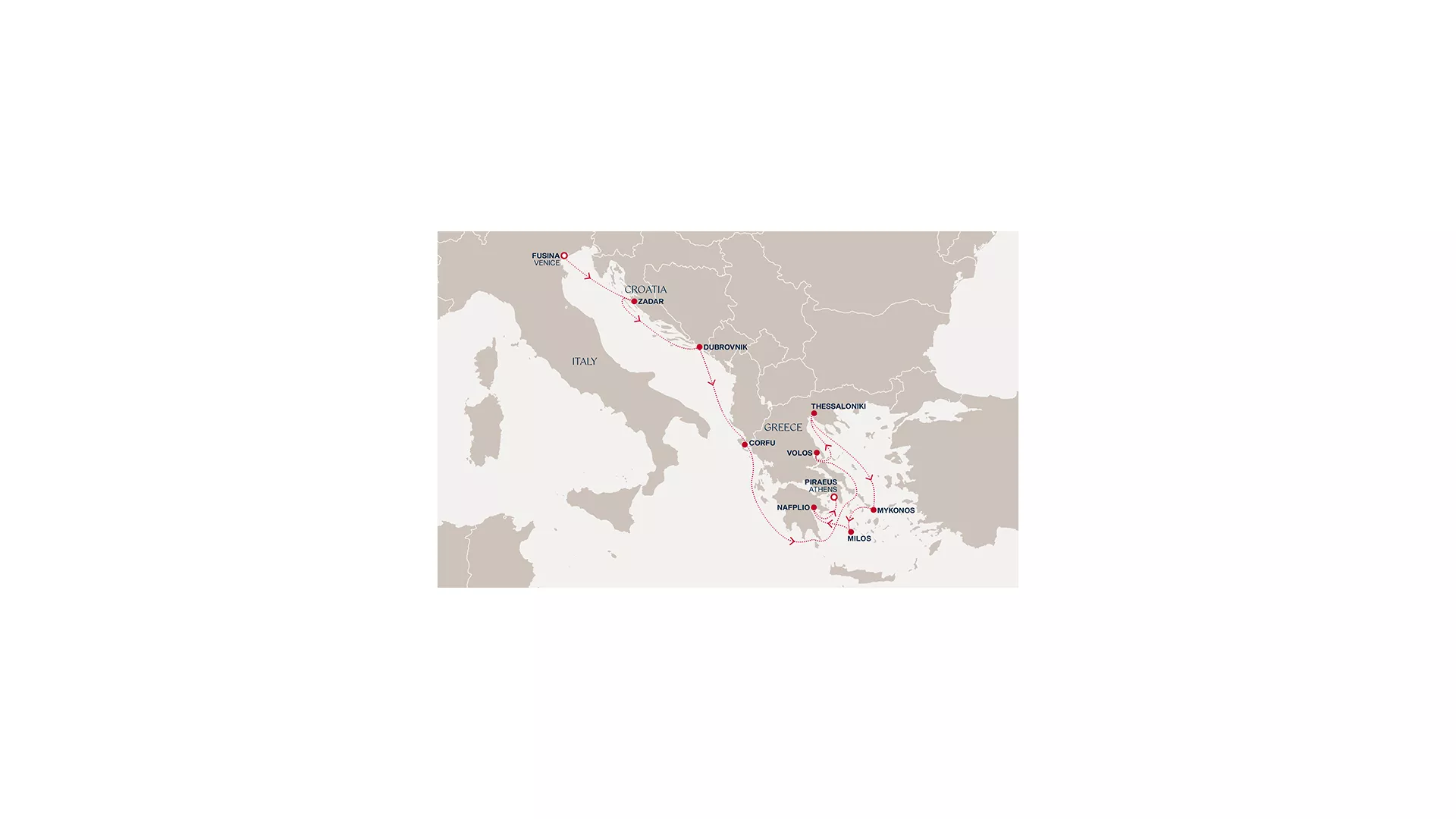 Begin in Venice, where timeless canals and artistry set the tone, before Zadar and Dubrovnik reveal Adriatic beauty and layered history. Corfu’s lush elegance offers a gentle transition to a restful day at sea, leading to Volos and Thessaloniki, where mythology and vibrant culture intertwine. After another serene crossing, Mykonos and Milos enchant with Cycladic allure, while Nafplio’s neoclassical charm adds refinement. Conclude in Athens, where ancient heritage and contemporary life come together in captivating harmony.