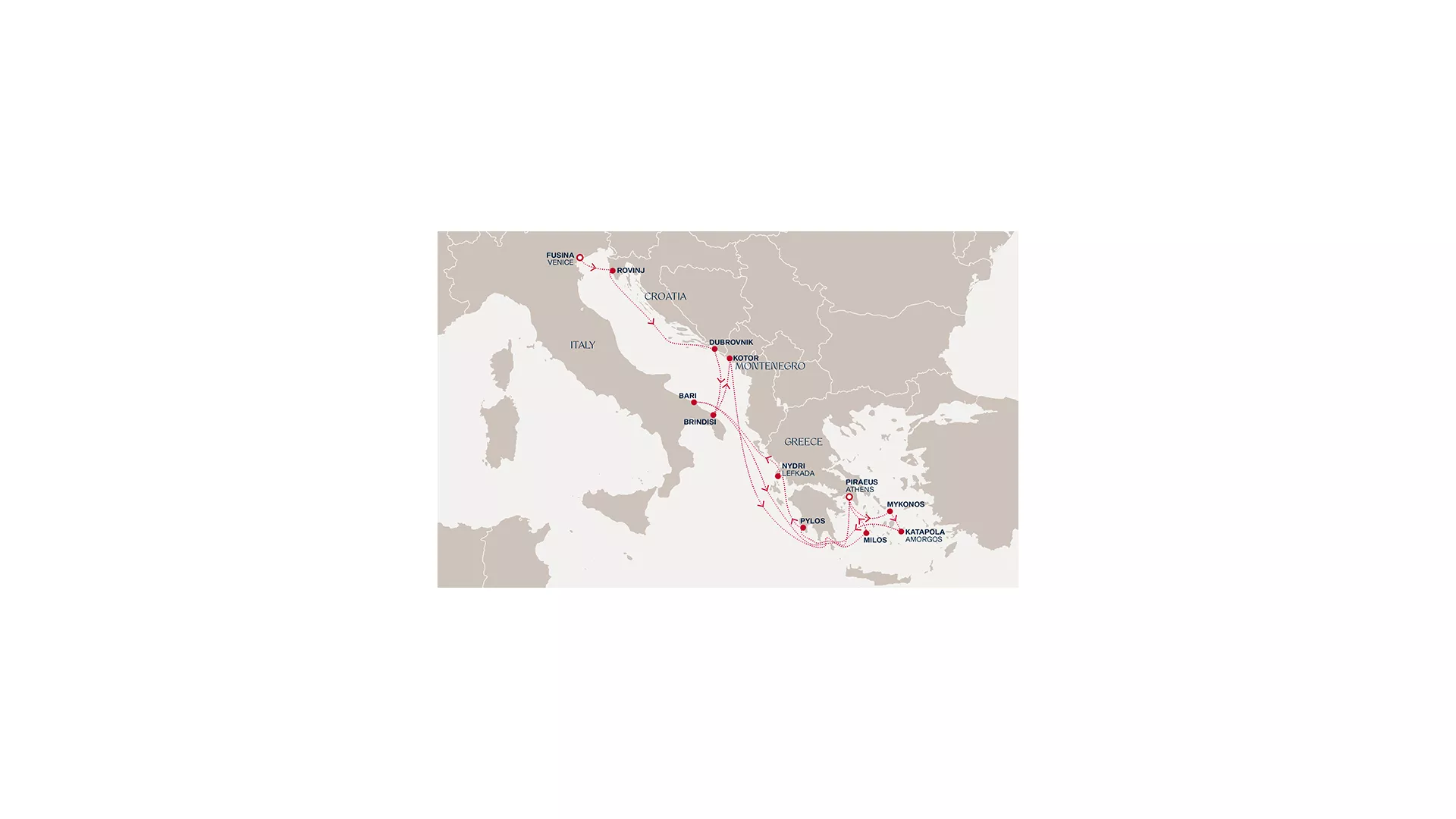 Begin in Venice before Rovinj’s pastel charm and Dubrovnik’s storied walls reveal the Adriatic’s timeless appeal. Brindisi and Kotor offer warmth and dramatic beauty, followed by a tranquil day at sea. In Greece, Milos enchants with sculpted shores, while Athens bridges ancient heritage and modern life. Continue through Mykonos’ vibrant energy and Amorgos’ serene authenticity, then Pylos and Lefkada’s lush landscapes unfold. Bari adds southern character before a final sea day returns you to Athens, enriched by contrasts and quiet discoveries.