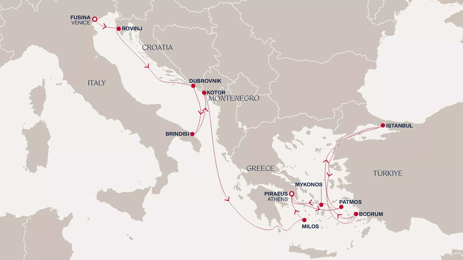 Stroll Dubrovnik’s limestone lanes and Brindisi’s scenic promenade. In Kotor,