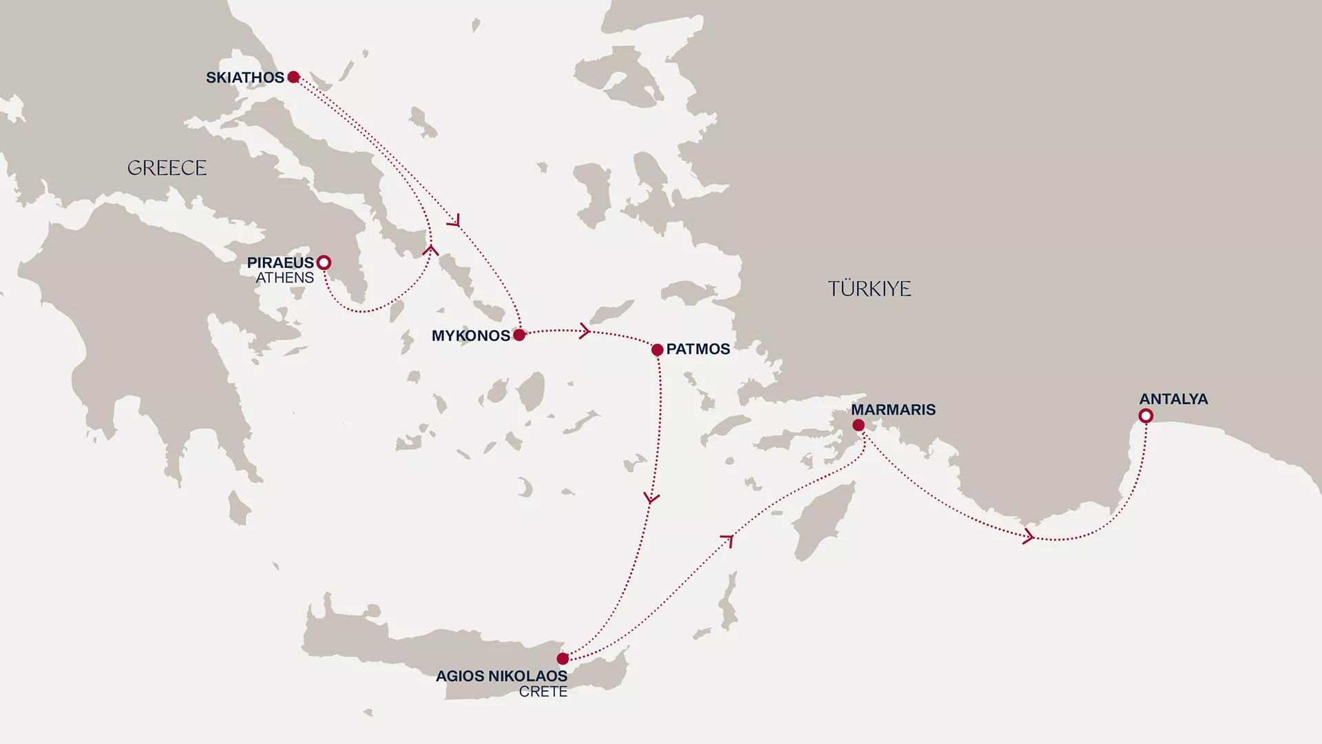 We venture into legend-laden destinations of Greece plus lesser-explored sirens, where local cuisine bursts upon our palates. Under-the-radar Skiathos and Agios Nikolaos strut with peacock-blue waters whilst our near-midnight departure from Mykonos let us witness stars above amphitheatrical Chora. We lounge on Türkiye's Riviera at Marmaris before reaching Antalya.