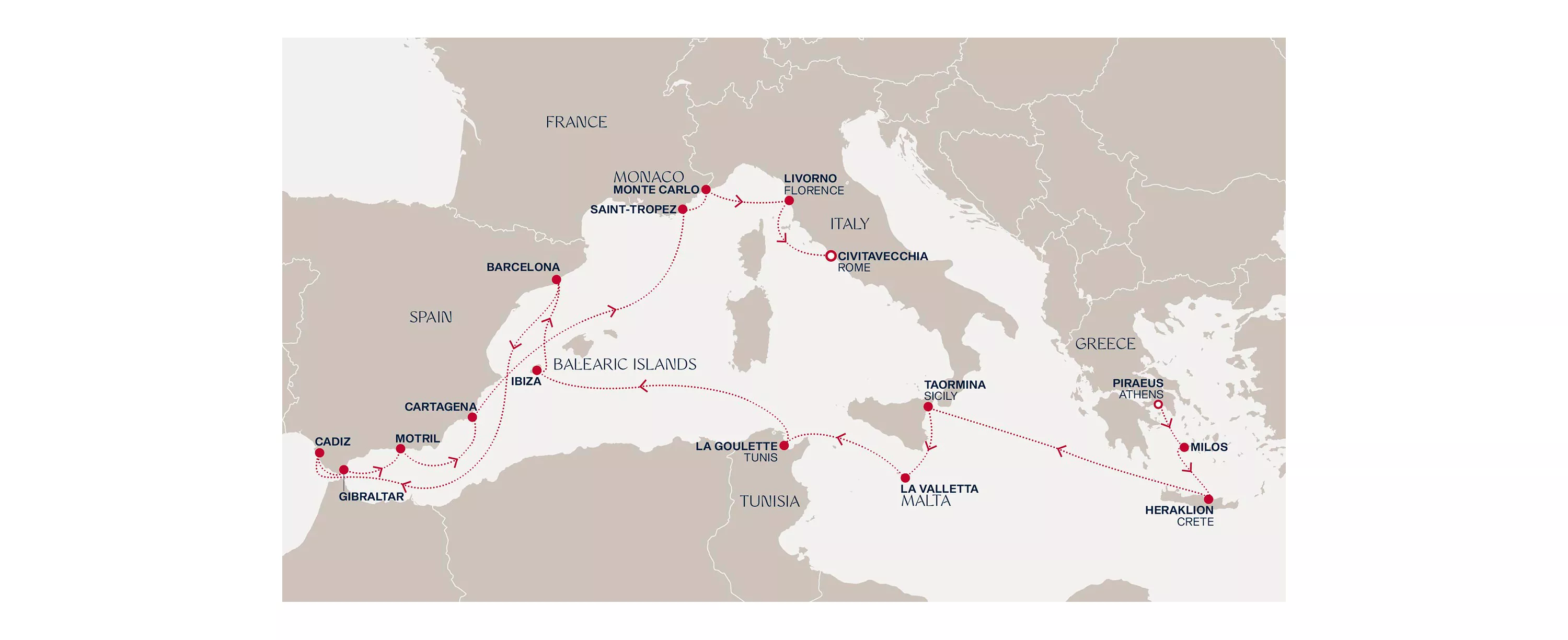 Observe your route and stops through our itinerary section, providing full details on each port.
