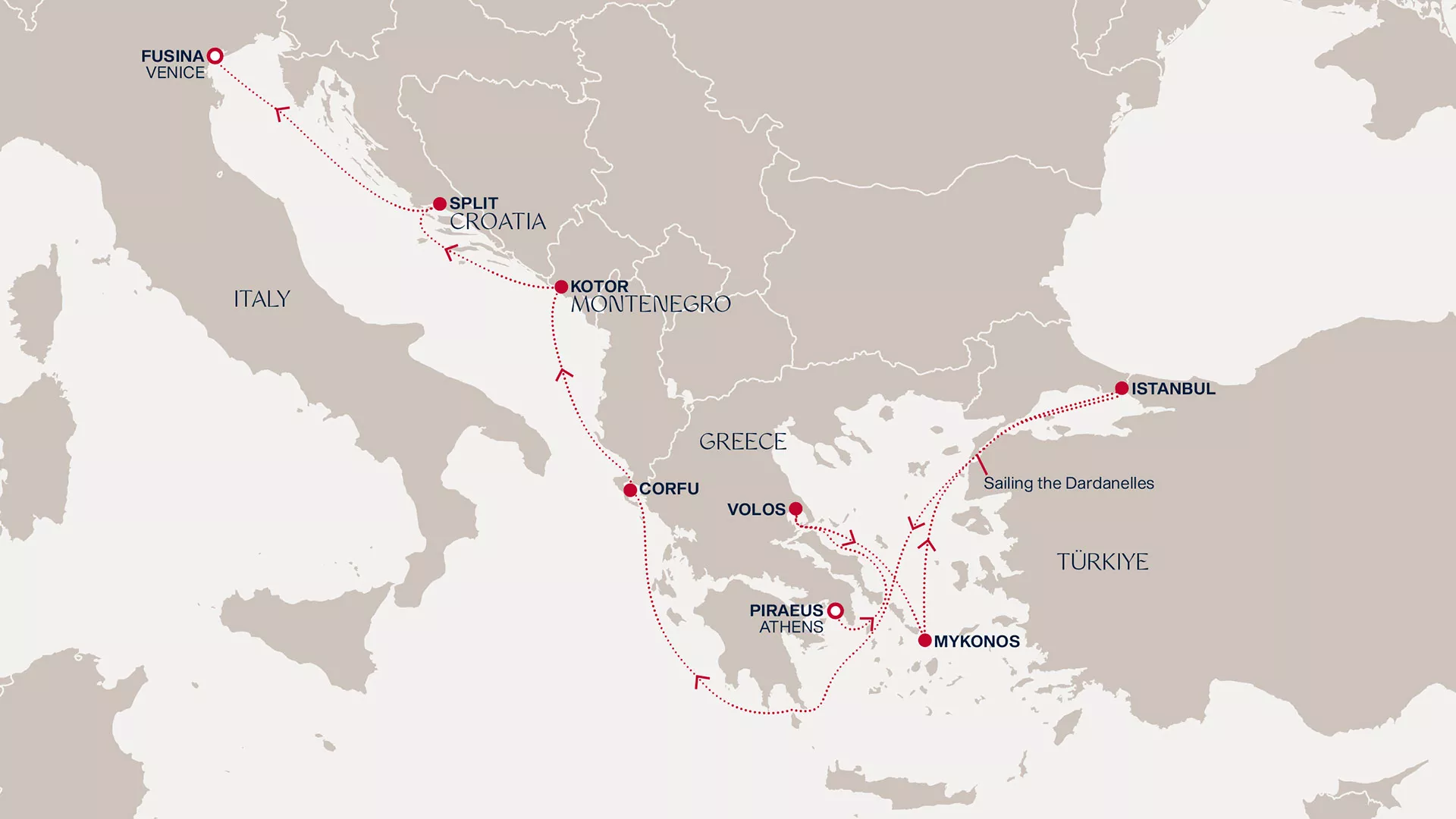 then onwards to the tempting flavours and aromas of Mykonos. Enjoy unhurried time at sea on board, as we cross the Aegean for an overnight stay among Istanbul’s
