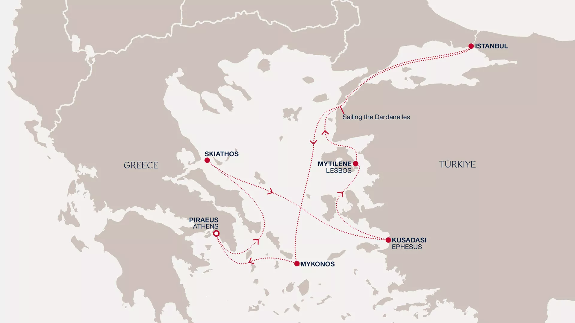 Skiathos, then stroll in the footsteps of ancients at Ephesus in Kusadasi.