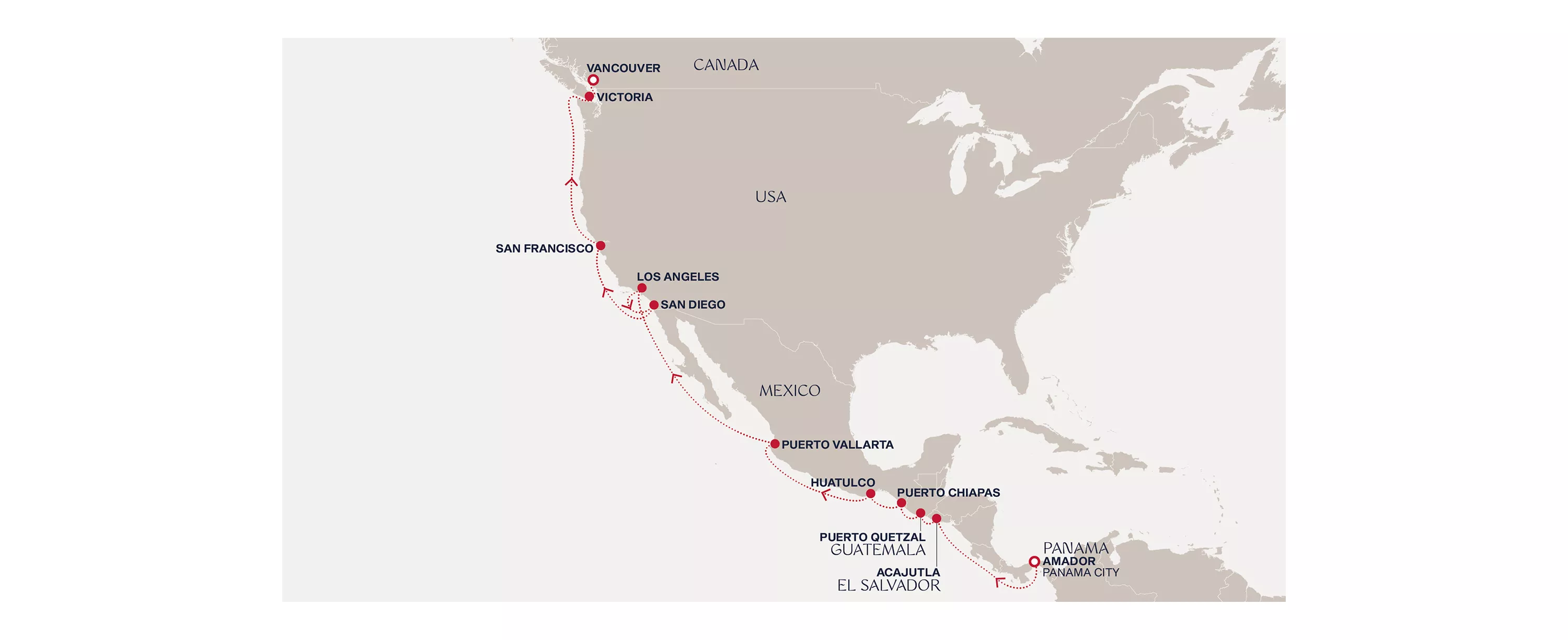 Observe your route and stops through our itinerary section, providing full details on each port.