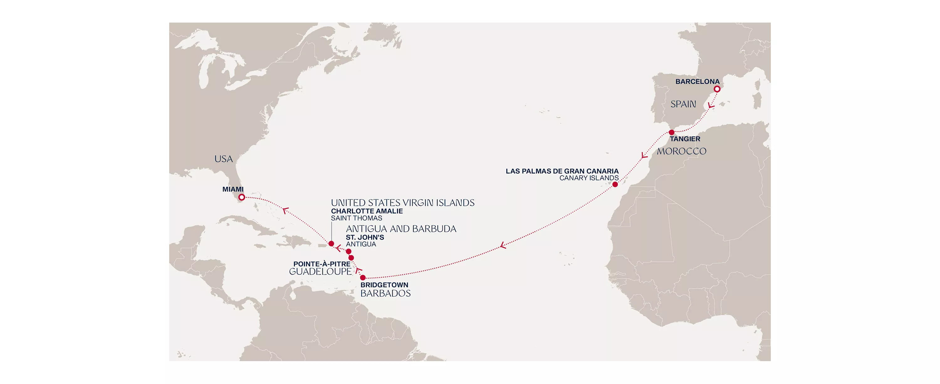 Observe your route and stops through our itinerary section, providing full details on each port.