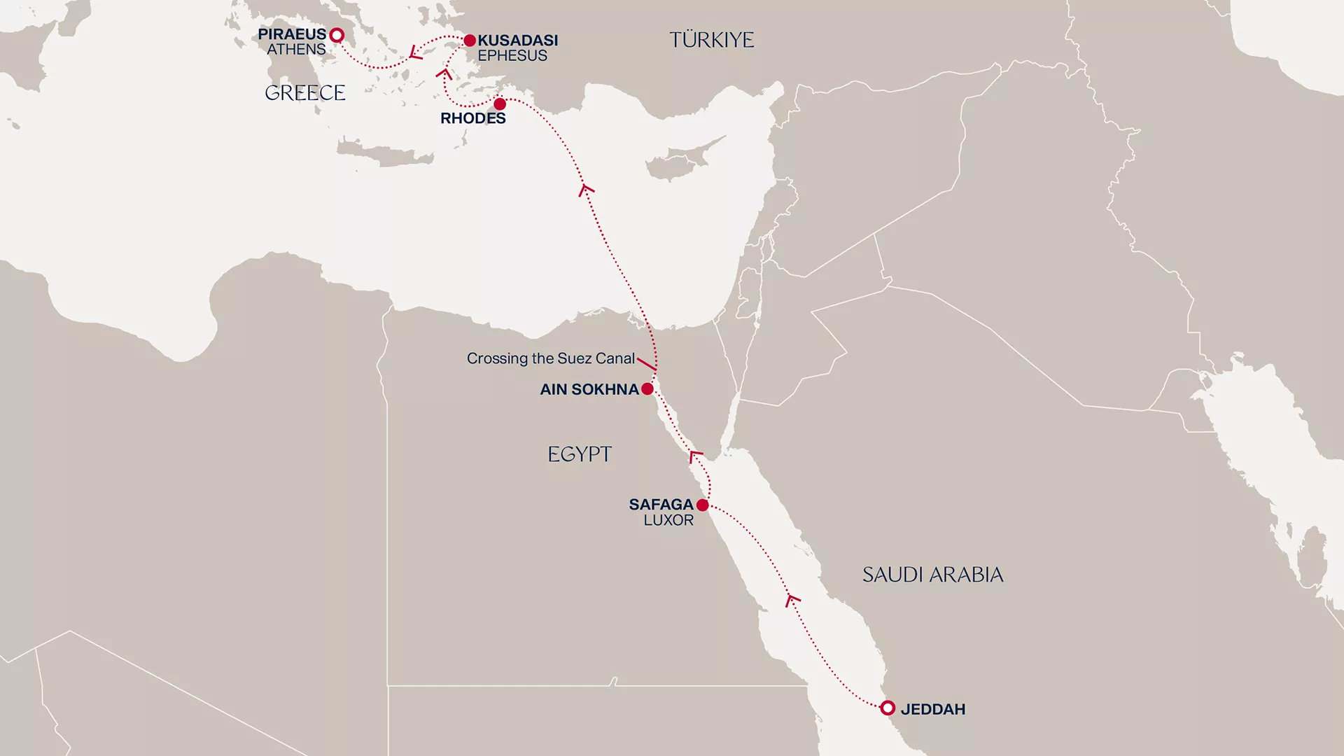 vibrant Jeddah. Sail to Luxor’s ancient wonders, spending a night by Safaga’s