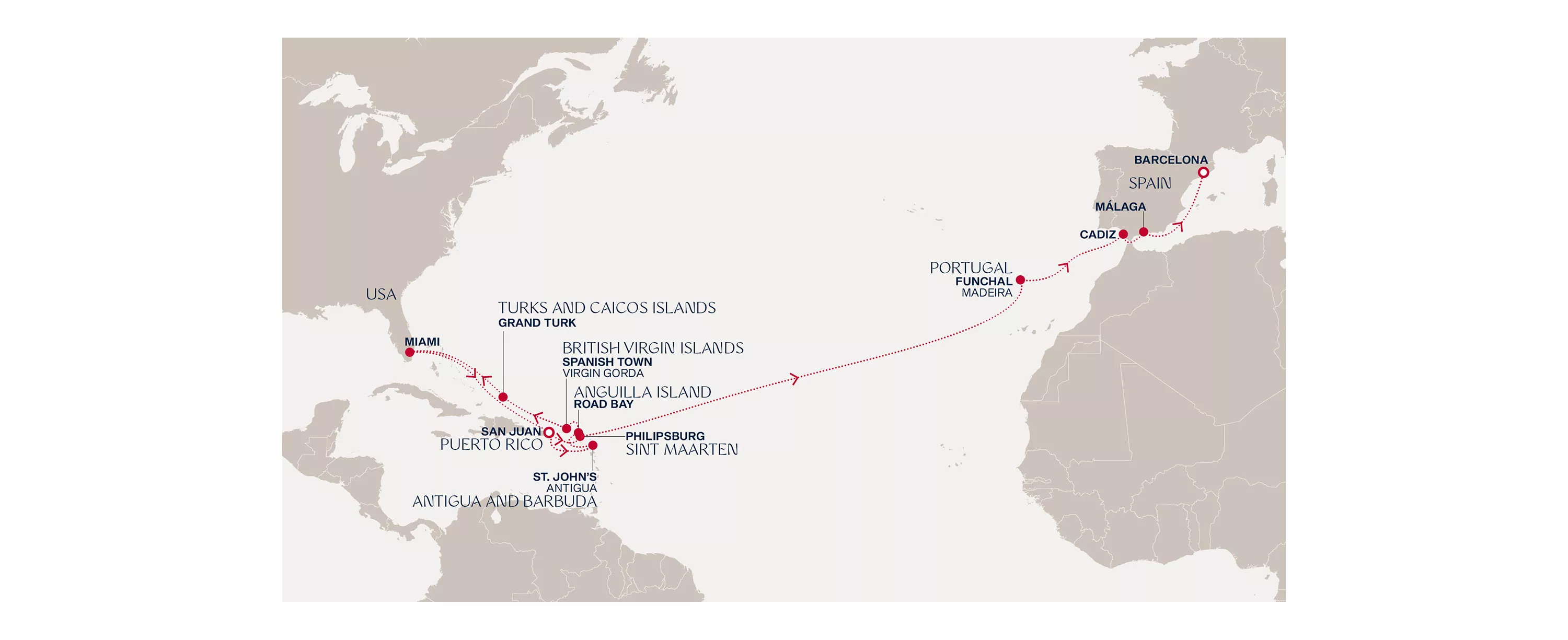 Observe your route and stops through our itinerary section, providing full details on each port.