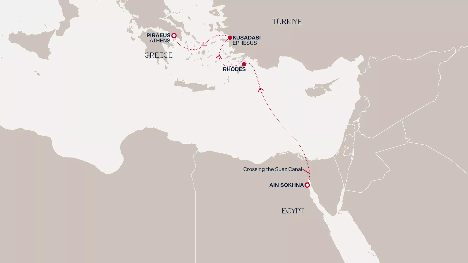 cross-continental adventure. Sail along the legendary Suez Canal and into the