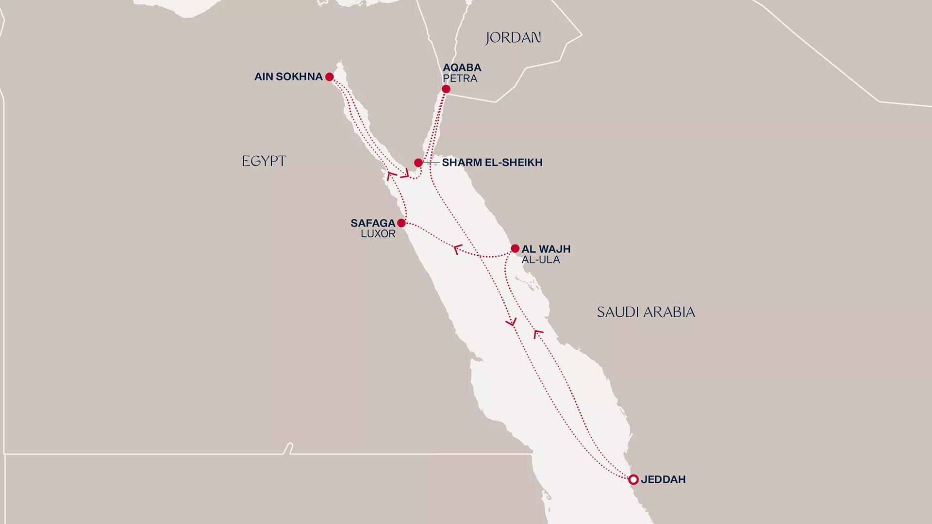 overnight in Safaga, then sail to Ain Sokhna and Sharm El-Sheikh, allowing