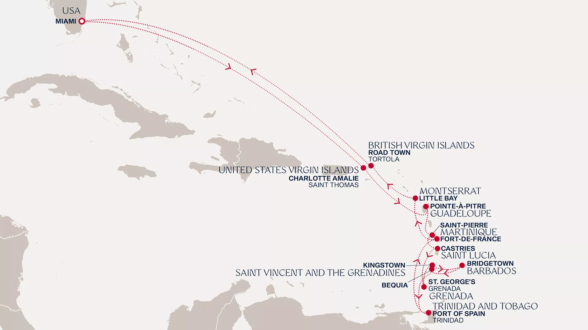 Miami to the paradise of Charlotte Amalie. Pointe-à-Pitre and Saint-Pierre’s Creole charm