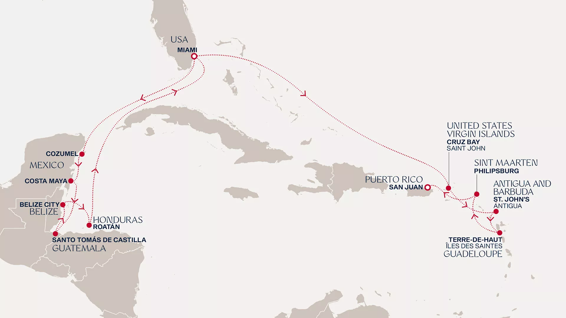 Rest on Roatán's balmy beaches before returning to Miami. Calm days at sea