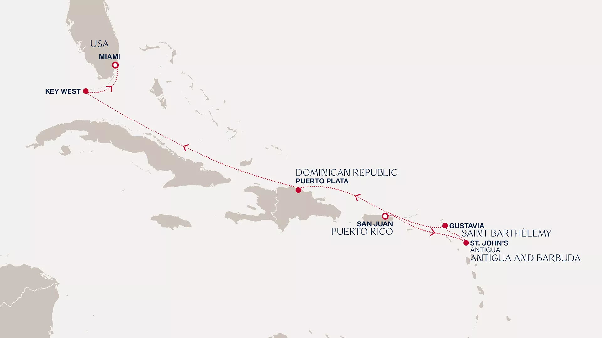 Capture the soul of the Caribbean, where lively cityscapes mingle with shimmering waterfront havens of peace. Historical and cultural exploration in San Juan paves the way for adrenaline-fuelled adventure on the sun-drenched shores of Antigua, where we dock at St. John’s in time for Easter weekend. Brush shoulders with extravagance in the secluded island paradise of Gustavia and explore Puerto Plata’s bountiful Silver Coast before sashaying into the vibrant rhythms of Key West, and cosmopolitan Miami.
