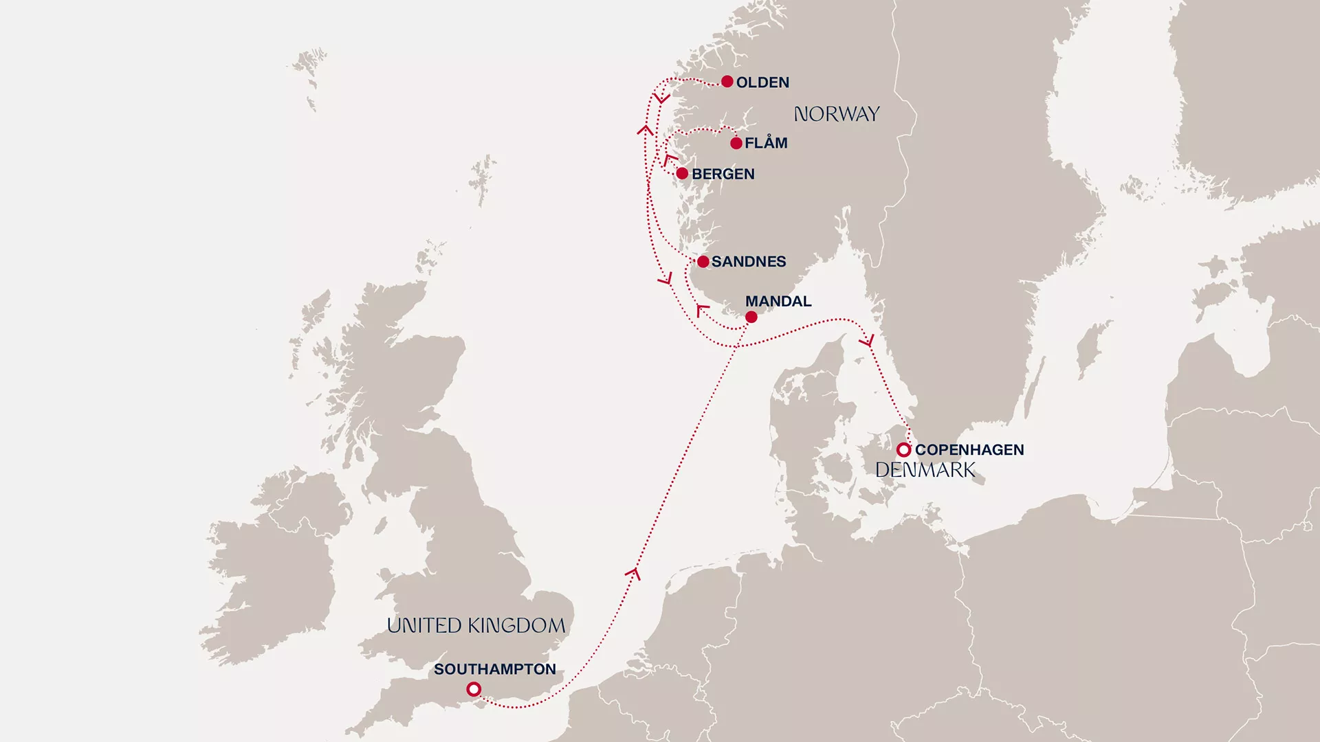 From vibrant Southampton, we indulge in a day of luxury at sea as we glide into Mandal, where Norway’s southern sun shines on golden beaches and white-washed houses. We continue our Norwegian odyssey with Sandnes, our gateway to Stavanger’s multi-coloured streets, then Olden’s dramatic fjords and glaciers. In Bergen, sample seafood delicacies and view scenic peaks, then take a breathtaking rail journey through the beauty of Flåm. For our lively finale, we reach the joyful welcome of Copenhagen.