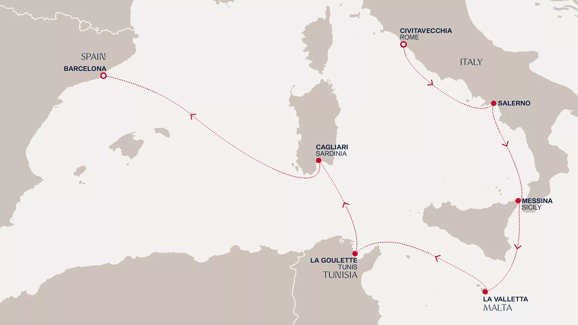 Uncover Tunis’s vibrant medina and Cagliari’s medieval allure and island